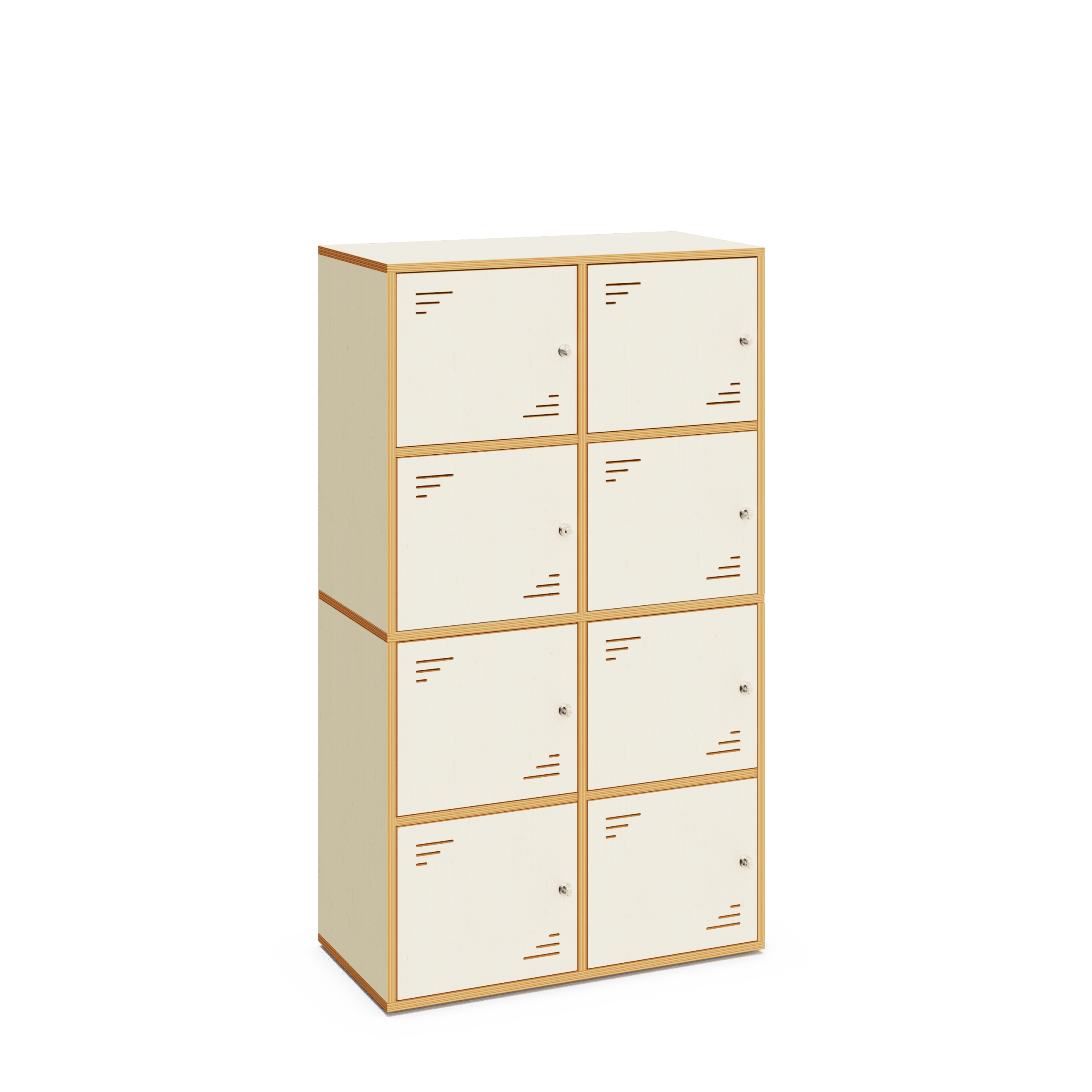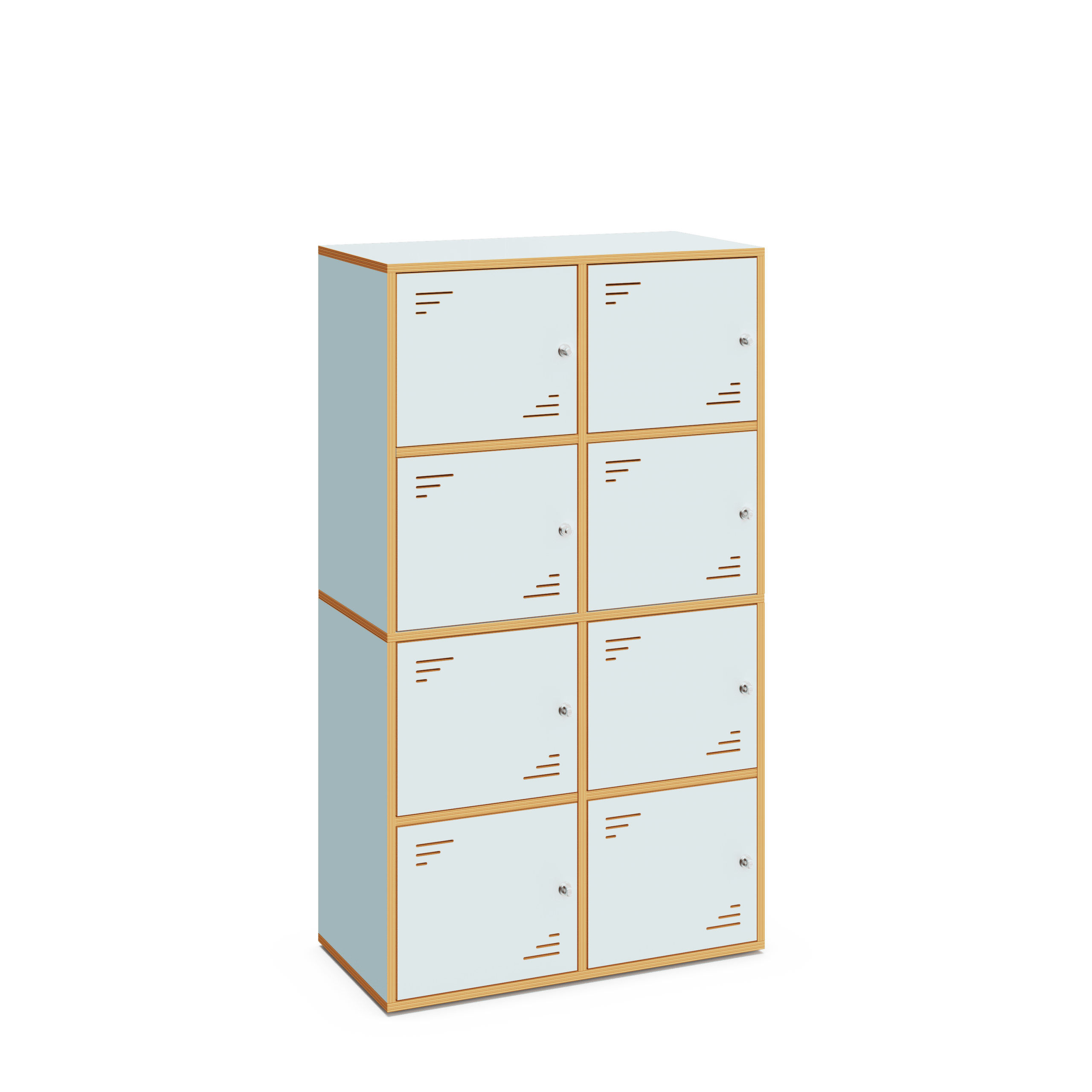 Er verfügt über acht Aufbewahrungsfächer mit Türen. Ideal zur Ausstattung von Klassenräumen und Fluren in Bildungseinrichtungen.