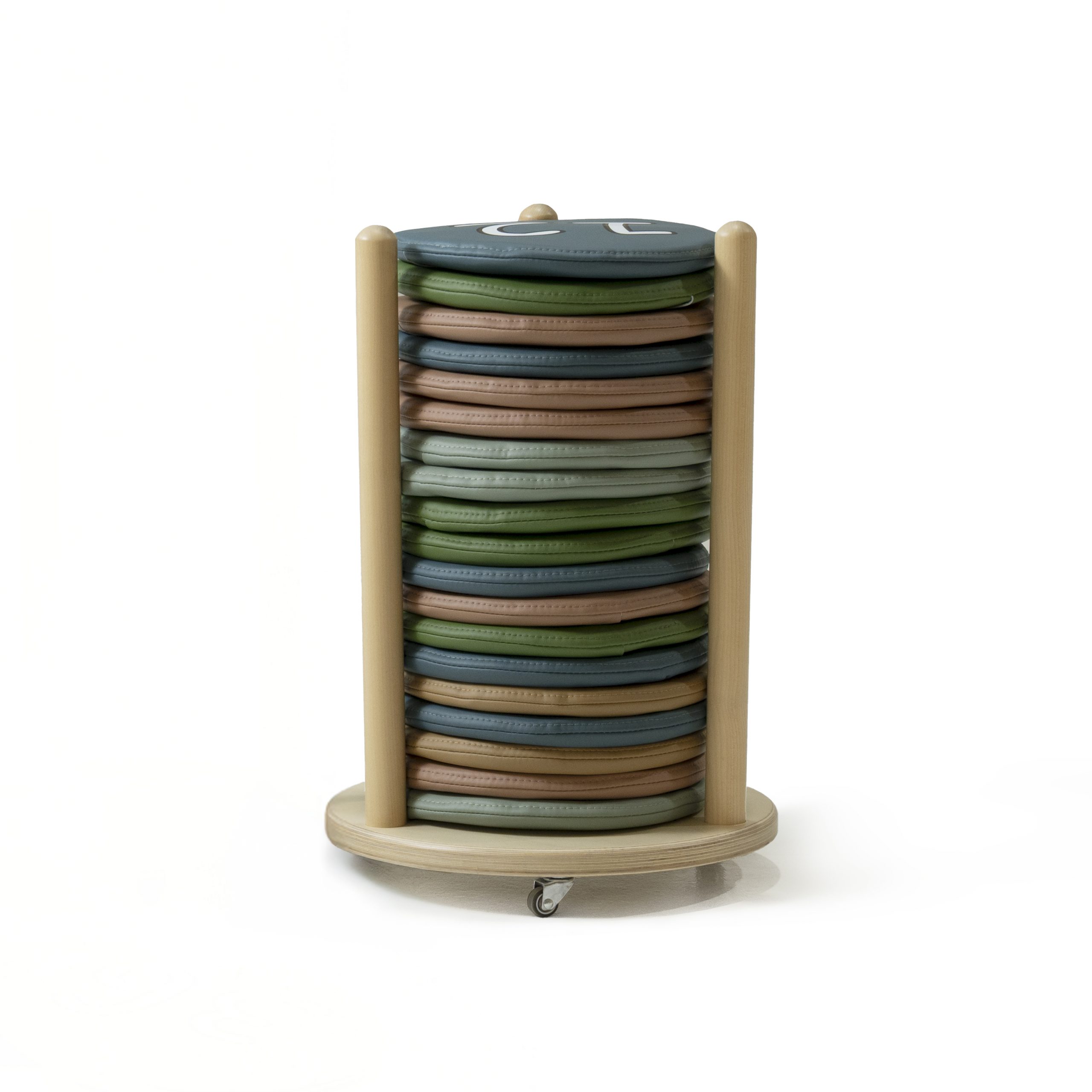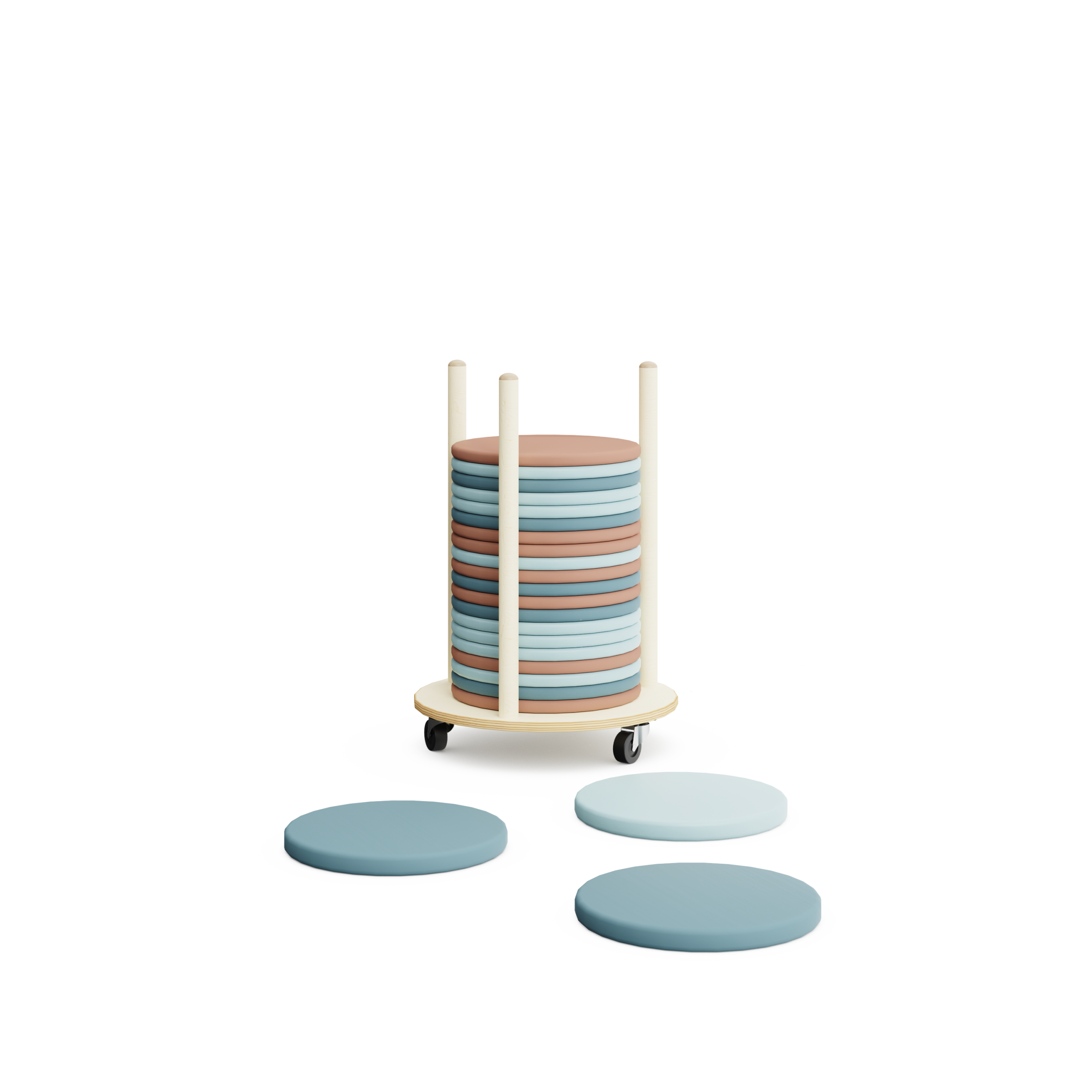 Kinder-Bodenkissen mit mobilem Aufbewahrungswagen, ideal zum Sitzen auf dem Boden während Gruppenaktivitäten, Spielen oder Ruhephasen. Enthält 2 Aufbewahrungswagen mit jeweils 20 gepolsterten und nummerierten Kissen. Der mobile Wagen erleichtert die Organisation und den Transport im Klassenzimmer. Das Design ist perfekt für Bildungseinrichtungen in Kindergärten und fördert Autonomie, Ordnung und spielerisches Lernen.